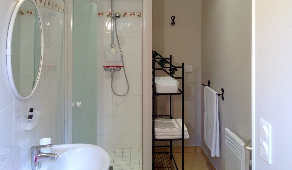- A l’étage : lit double (160×200), une commode, une penderie et une console